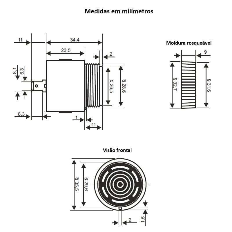 Conteúdo da embalagem: Um Alarme Sonoro para Painel de 110 a 220VCA 80 Decibéis 30 mm