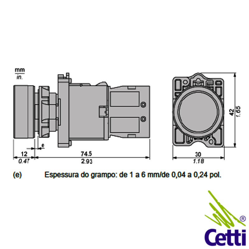 A montagem no painel é não faceada, com furação de 22 mm. Pode ser montado em qualquer posição. O ciclo de vida mecânica do botão é de 1.500.000 operações (1,5 milhões de operações). Possui grau de proteção IK03 contra impactos mecânicos