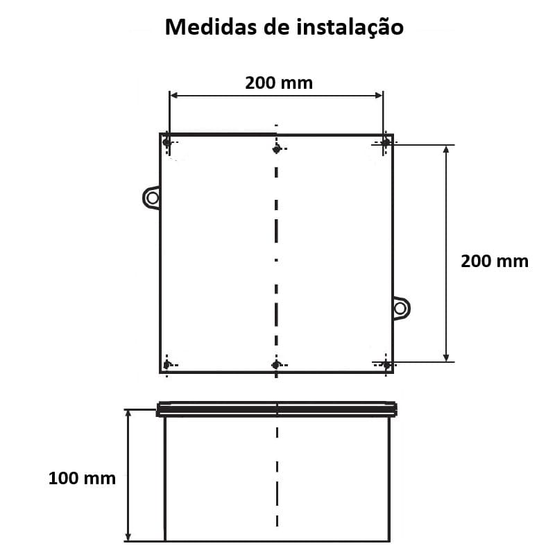 Conteúdo da embalagem: Um Caixa de Passagem Elétrica de Alumínio com 200 x 200 x 100 mm e Componente de Vedação
