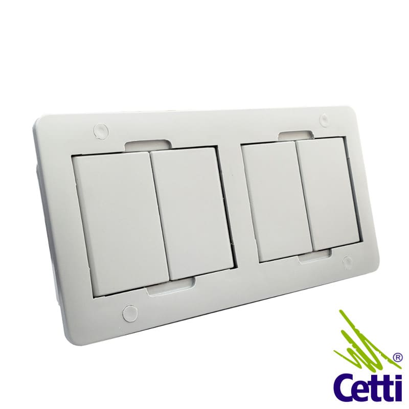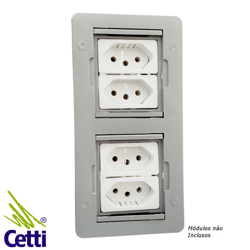 Possui espaço para 4 módulos (não inclusos), possibilitando a instalação de tomadas e entradas USB e RJ45.