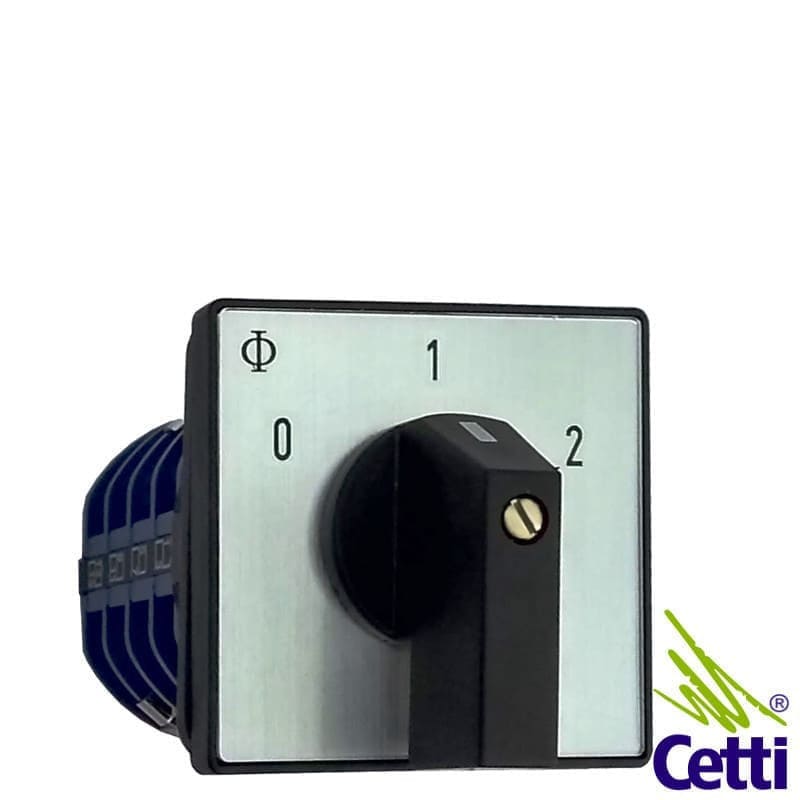 Manopla frontal do tipo chave seletora com 3 posições fixas (0 – 1 – 2)