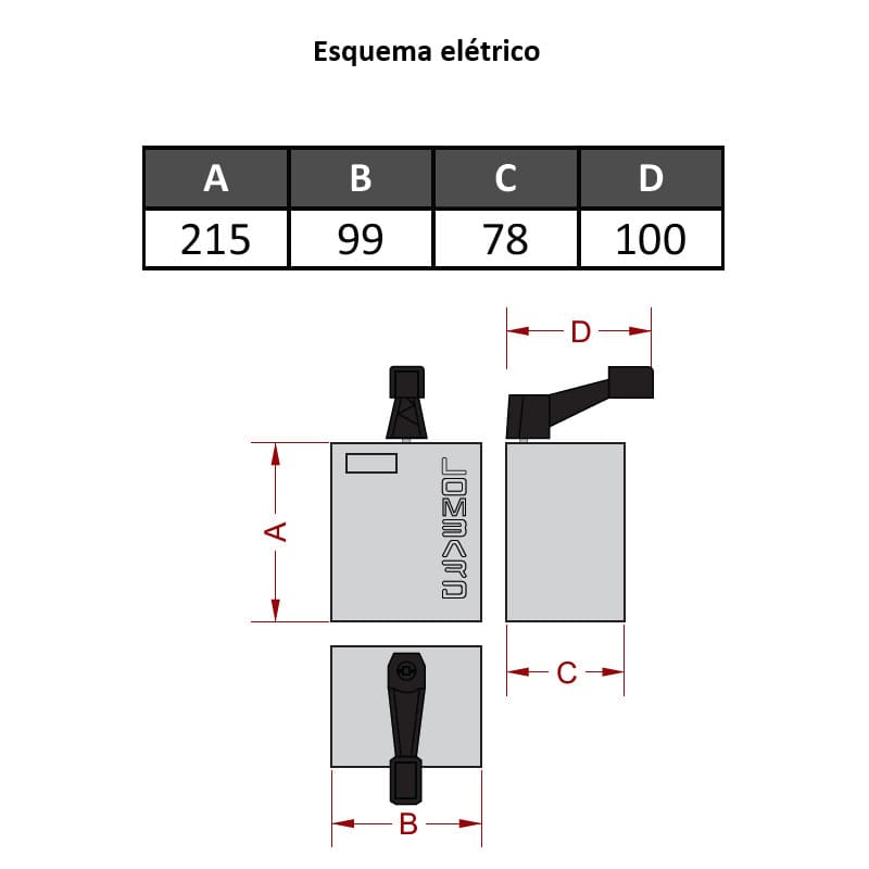 Altura: 78 mm para caixa e 100 mm para manopla de comando