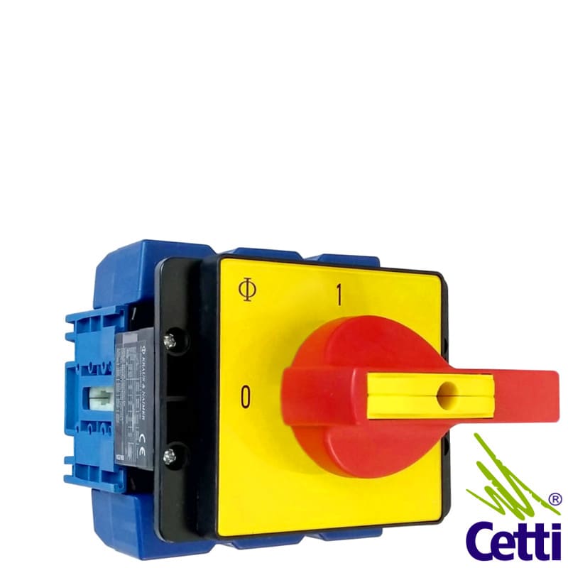 Manopla frontal do tipo chave seletora com 2 posições (1 e 2) e dispositivo para travamento por cadeado