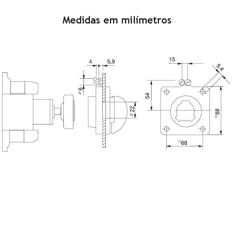 Montagem: Por acoplamento na porta do painel, com 4 parafusos (inclusos)