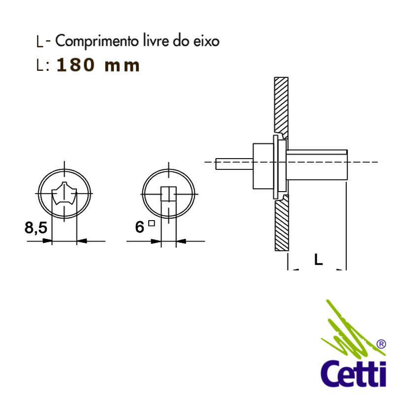 O eixo prolongado para comando à distância mede 180 mm de comprimento