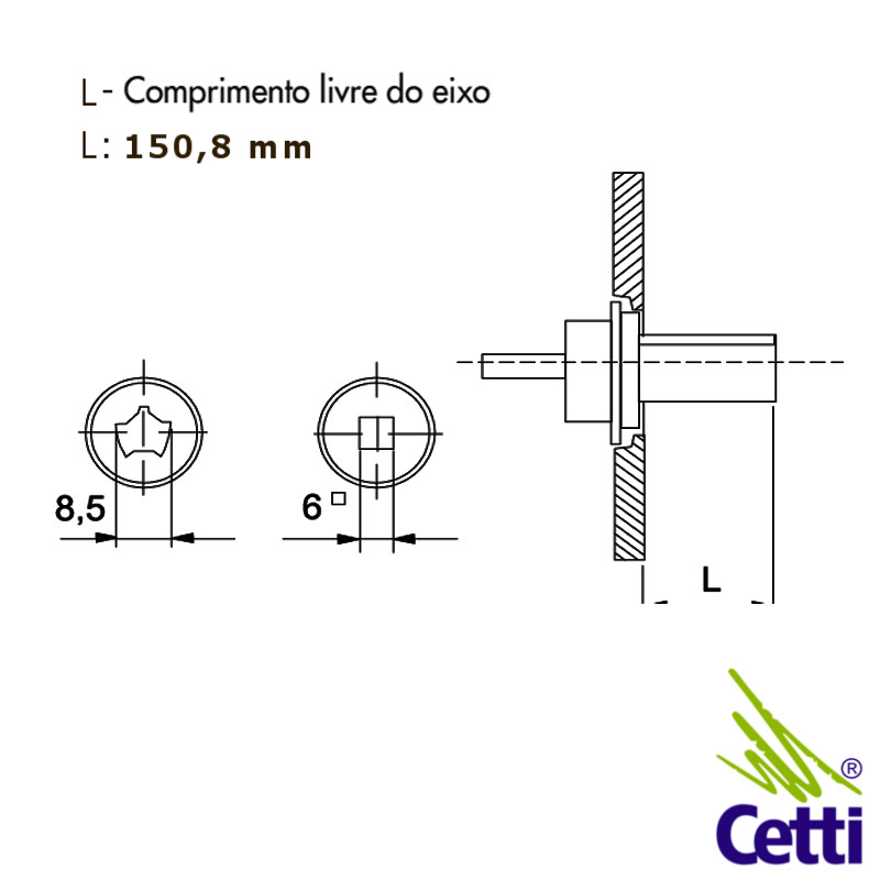 O eixo prolongado para comando à distância mede 150,8 mm de comprimento