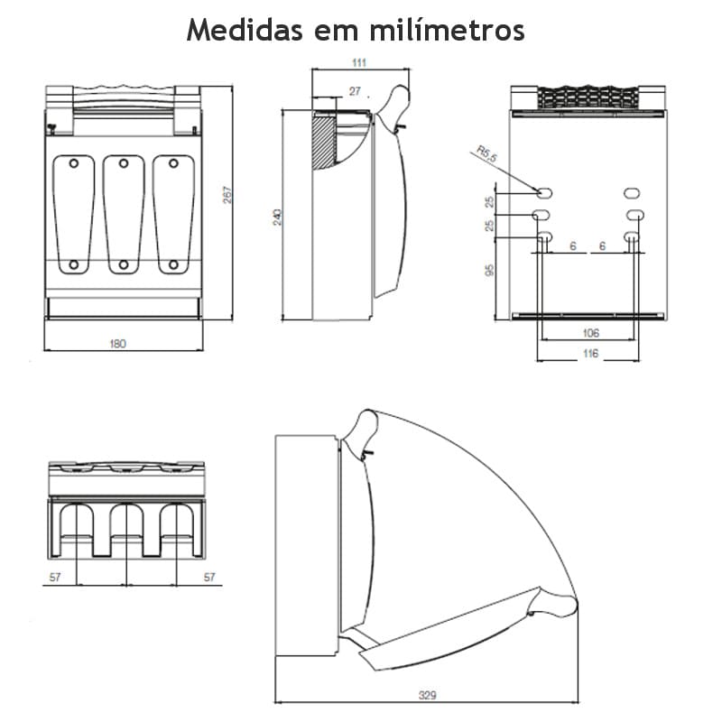 A verificação de tensão e dos fusíveis pode ser feita por furos na tampa, sem seccionar o circuito