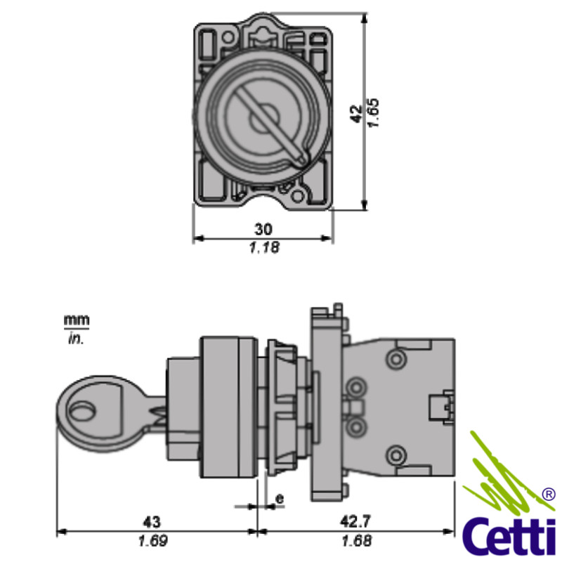 A montagem no painel é não faceada, com furação de 22 mm. Pode ser montado em qualquer posição.