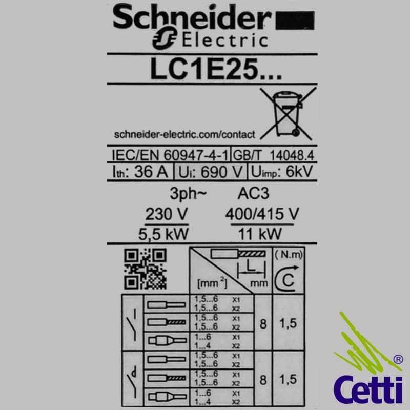 Contator tripolar Schneider, modelo LC1E2510M7.