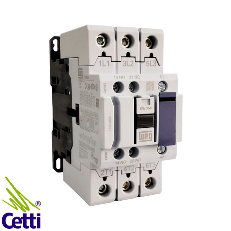 Contator WEG Tripolar 50A 24Vca 1NA 1NF CWB50-11-30D02