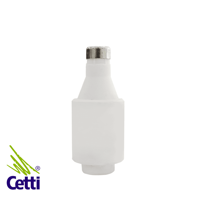 Fusível do tipo diazed em formato cilíndrico com corpo em cerâmica.