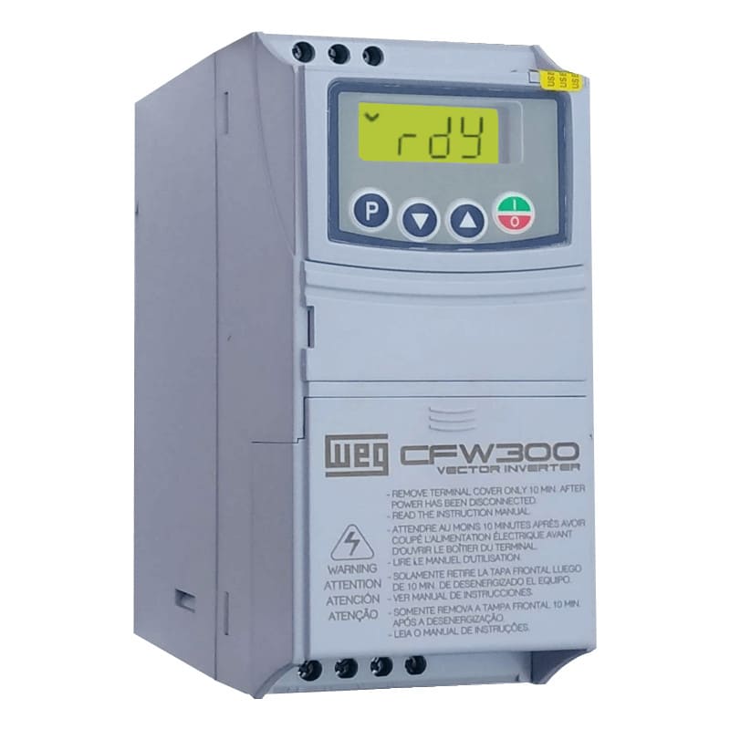 Inversor de frequência CFW300 da WEG. Para entrada a 220V monofásica, com saída trifásica.