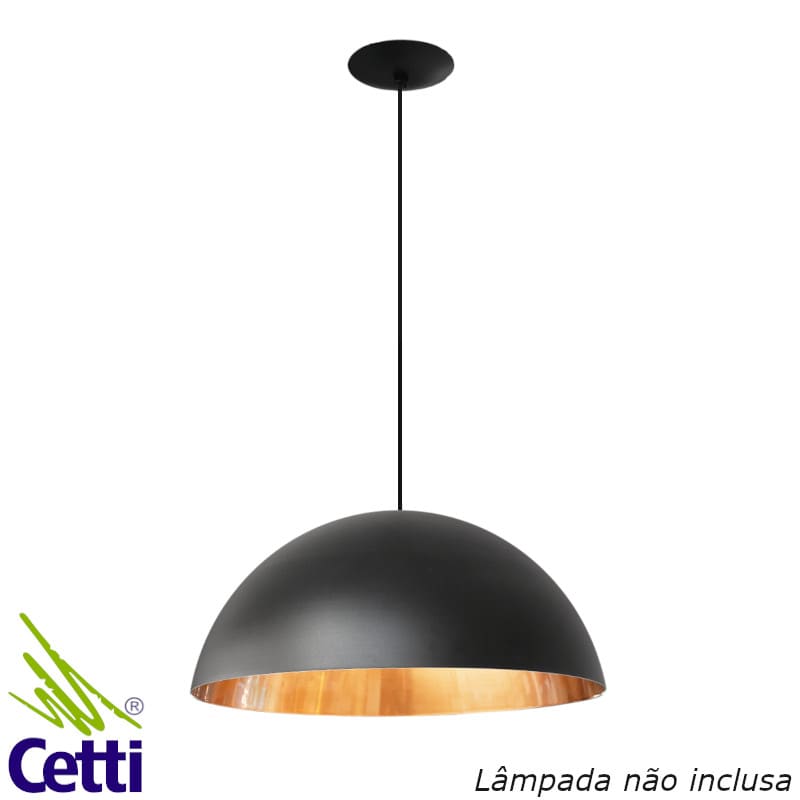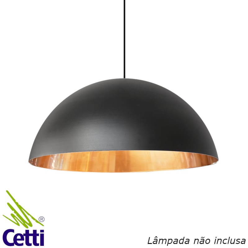 Lustre pendente meia bola preto e cobre modelo Atenas, Nobre.