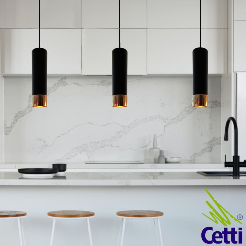O pendente tem design sóbrio, perfeito para iluminar e decorar cozinhas, salas, áreas de churrasqueira, restaurantes, ambientes comerciais, consultórios e mais.