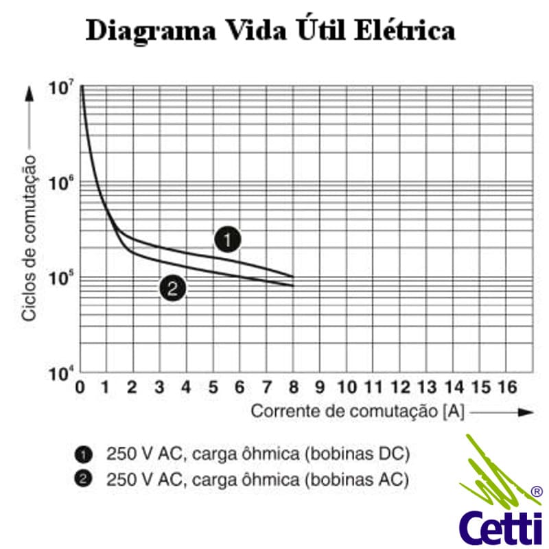 Relé de Contato de Potência: relé miniatura, plugável, com 8 contatos do tipo pino, dos quais, 2 contatos reversíveis.