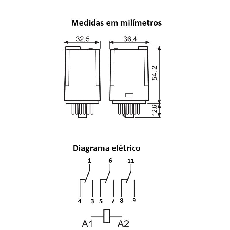 Indicação de uso: Relé para automação industrial e comandos elétricos.