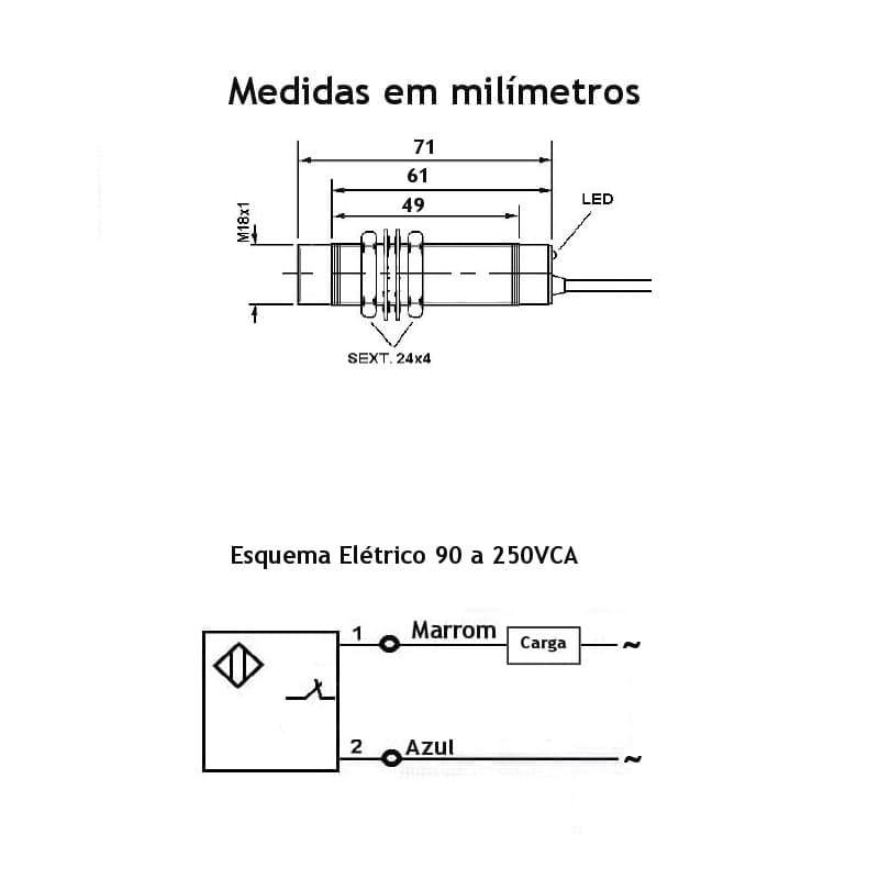 PRODUTO: Sensor de Proximidade Indutivo 220V 1NF 8mm M18 LM18-2008B