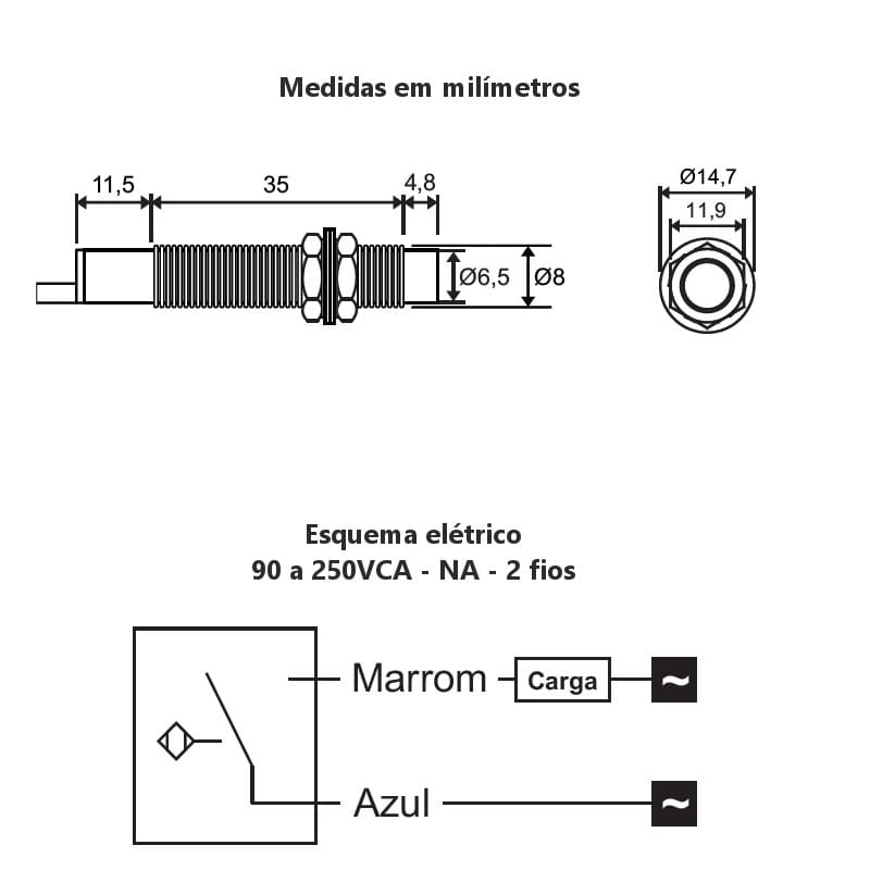 PRODUTO: Sensor de Proximidade Indutivo 220V 2 Fios 1NA M8 LM8-2002-A