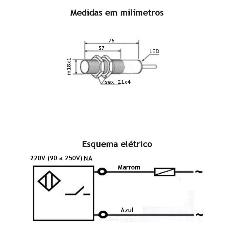 PRODUTO: Sensor de Proximidade Óptico Retro Reflexivo 220V 1NA 2m M18 G18-2B2LA
