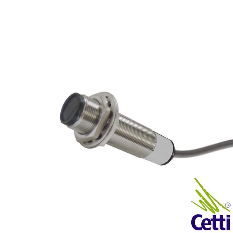 Sensor de proximidade do tipo óptico difuso com sinal de operação LED na traseira.