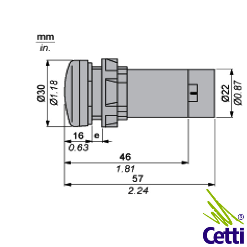 A montagem do sinaleiro no painel é não faceada, com furação de 22 mm.